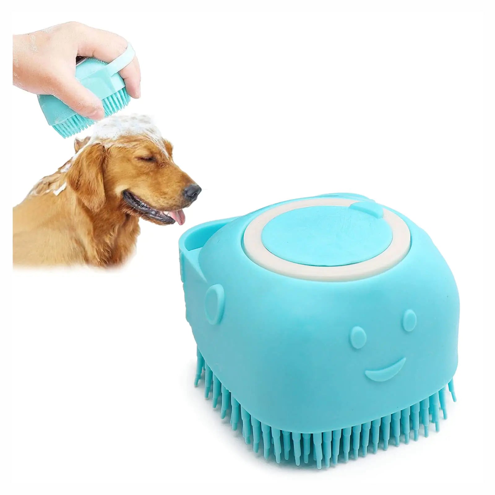 Dog Scrubber for Bath Pet Bathing Brush Silicone Shampoo Massage Dispenser Brush for Short Long Haired Dogs and Cats Washing(Blue)